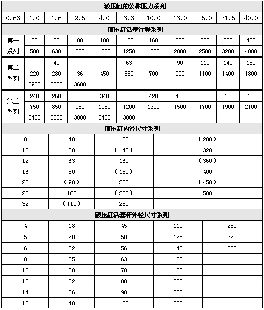 國家標準GB/T7938-1987規(guī)定了液壓缸公稱壓力系列